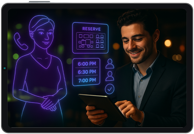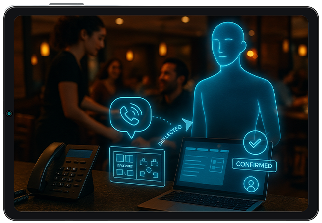 Your AI picks up every call, day or night, and books tables instantly. It manages walk-in demand, last-minute changes, and keeps your dining room running at full capacity—all without tying up your staff.