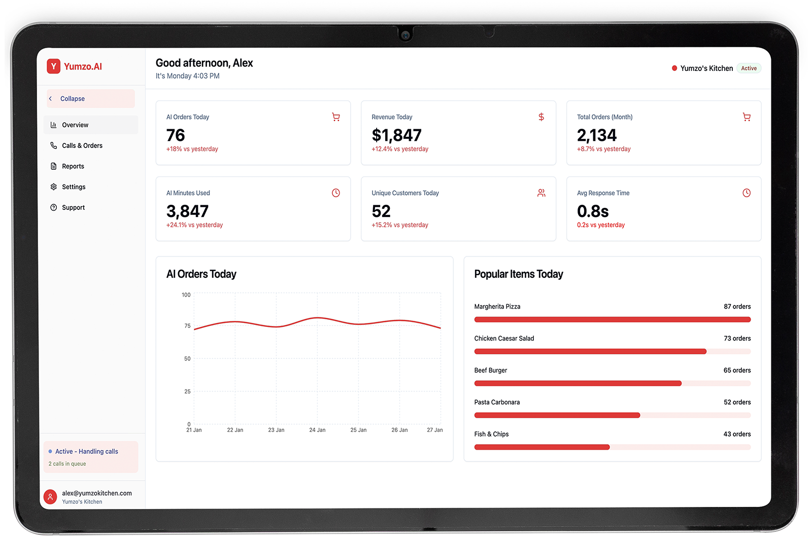 Yumzo.ai answers instantly as a receptionist or ordering assistant.